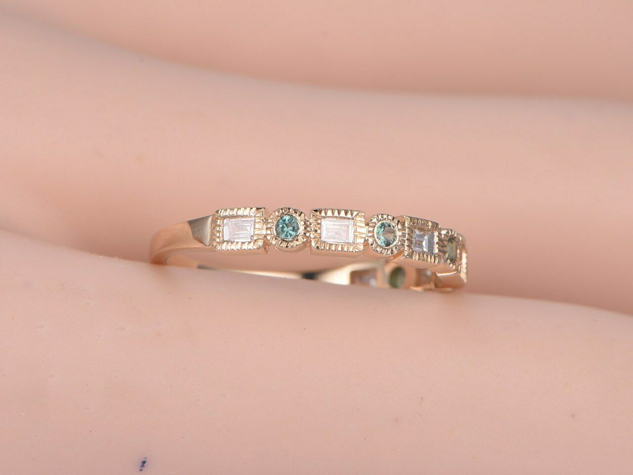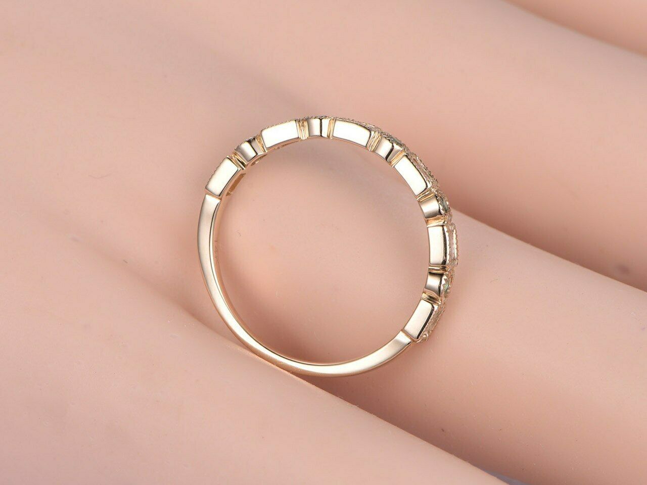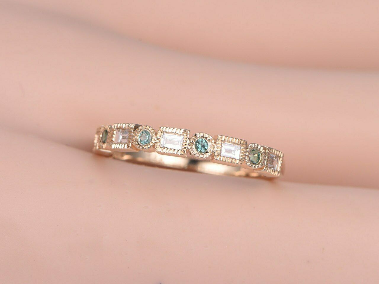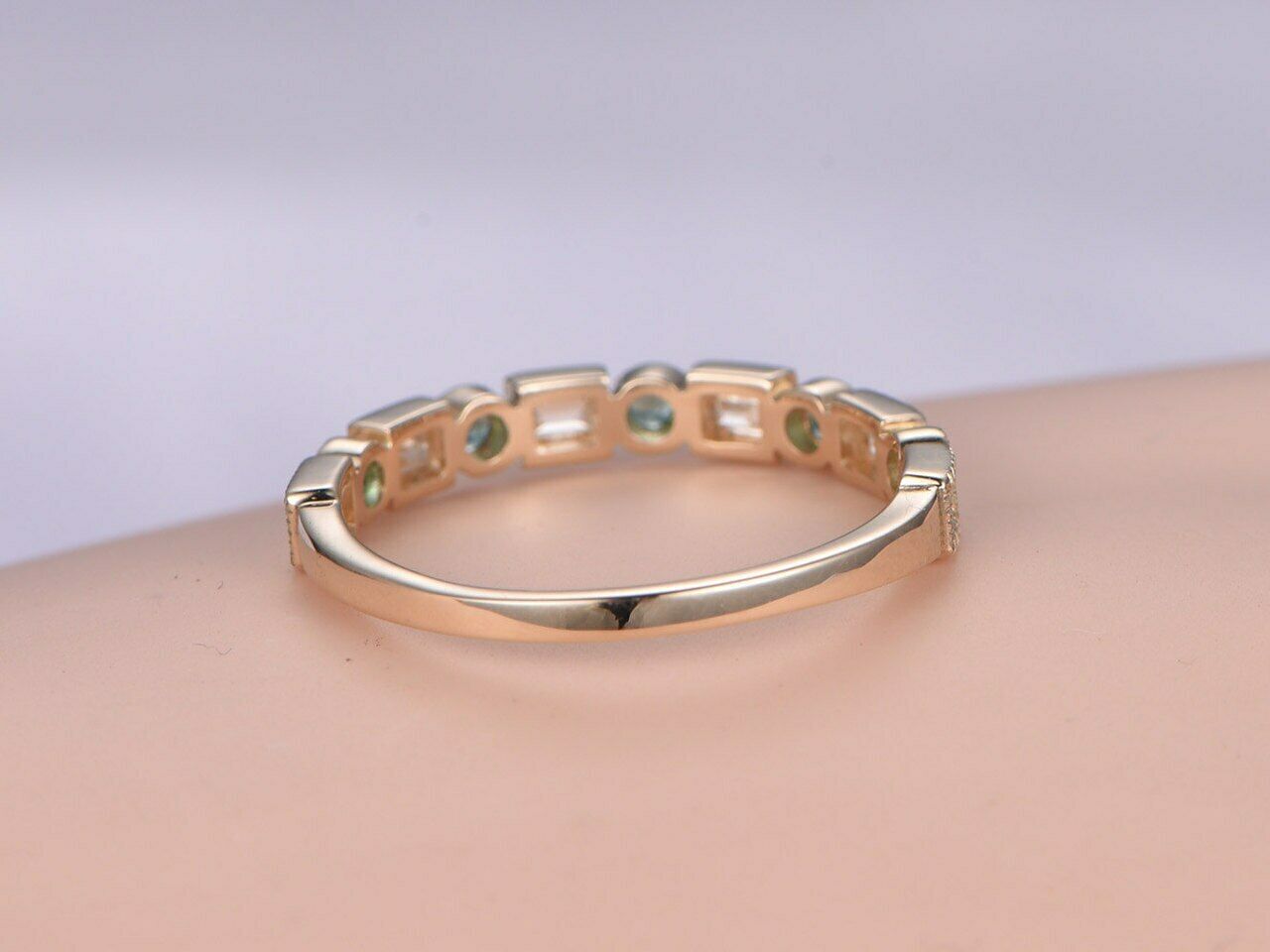 1ct Round Cut Green Emerald Half Eternity Stackable Band 14k White Gold Finish