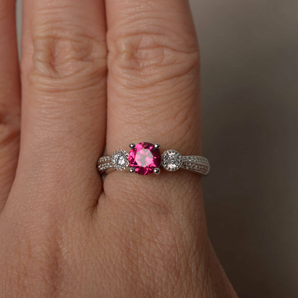 1ct Round Cut Pink Ruby Milgrain Vintage Engagement Ring 14k White Gold Finish
