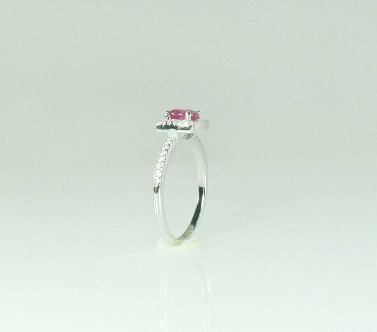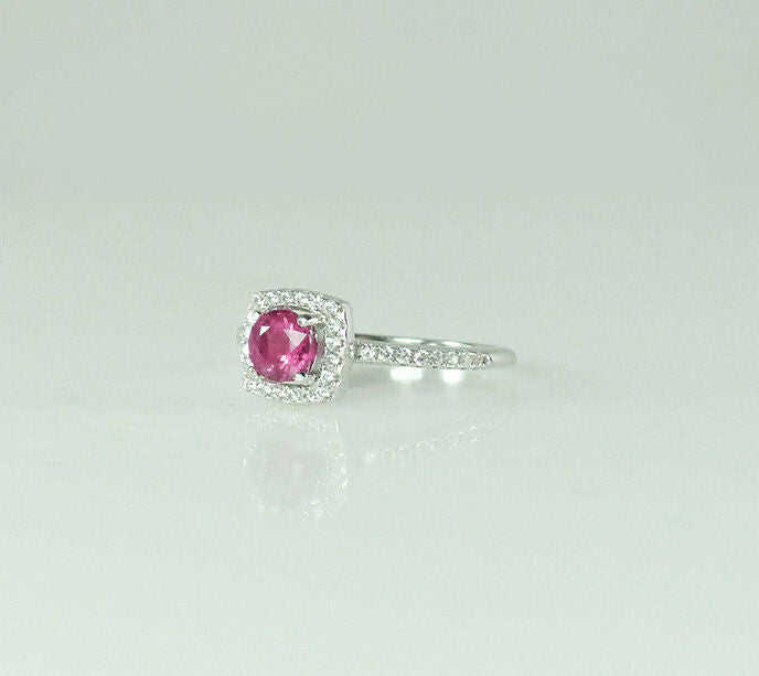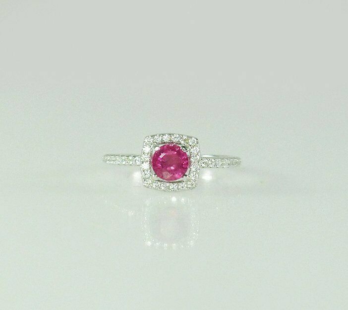 1ct Round Cut Pink Sapphire Engagement Ring 14k White Gold Finish Halo Solitaire