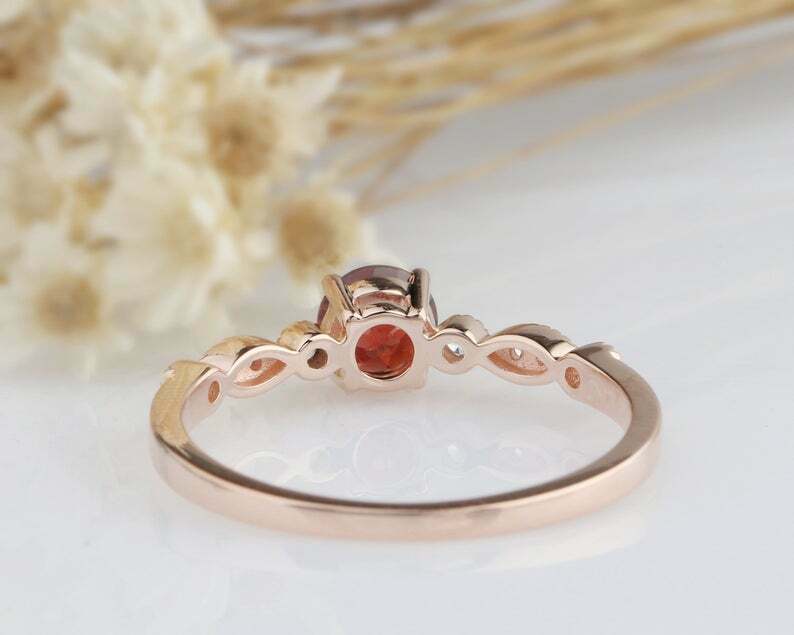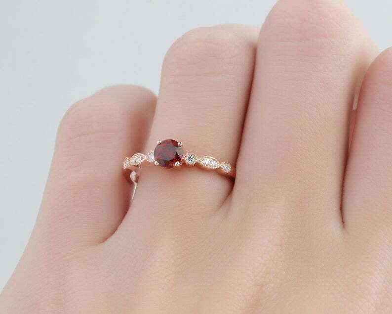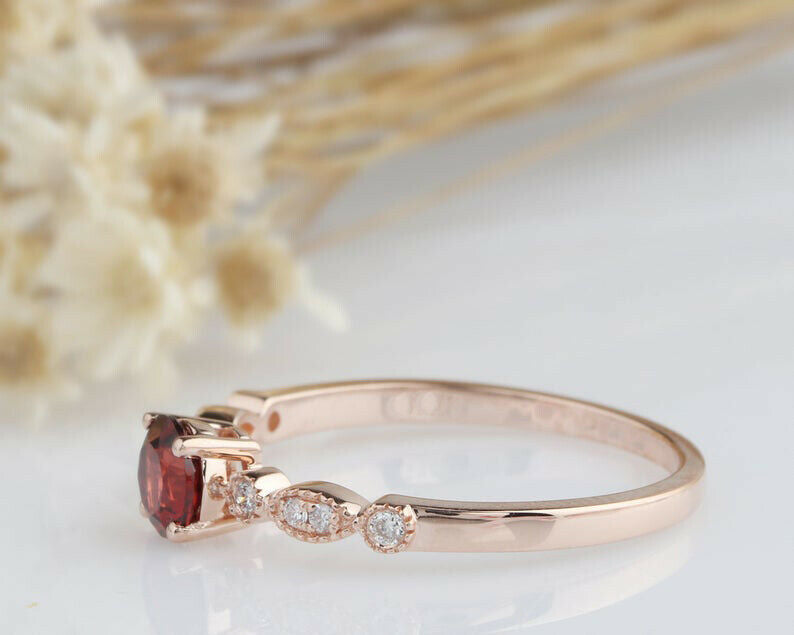 1ct Round Cut Red Garnet Engagement Ring Solitaire with Accent 14k Rose Gold Over