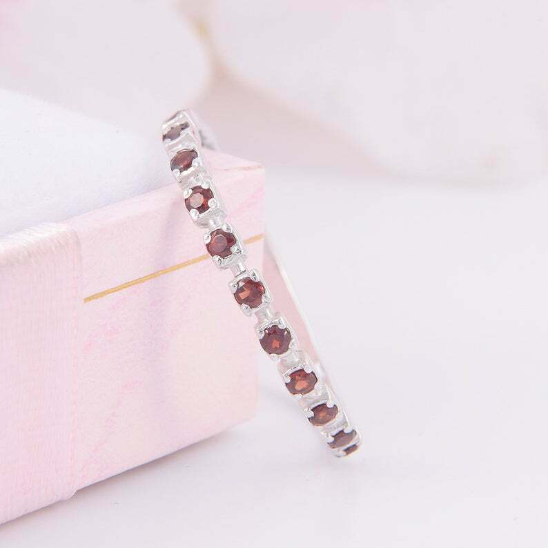 1ct Round Cut Red Garnet Wedding Band Square Minimalist 14k White Gold Finish