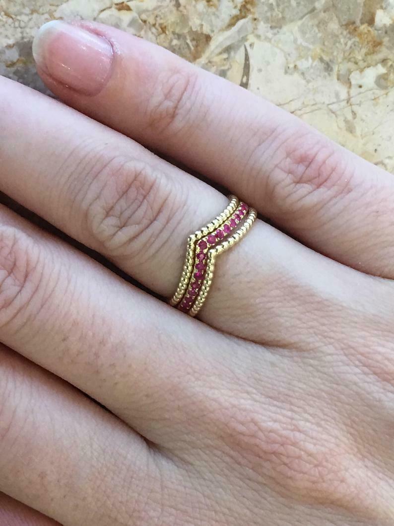 1ct Round Cut Pink Ruby Engagement Ring Curved Chevron Trio Set 14k Yellow Gold Over