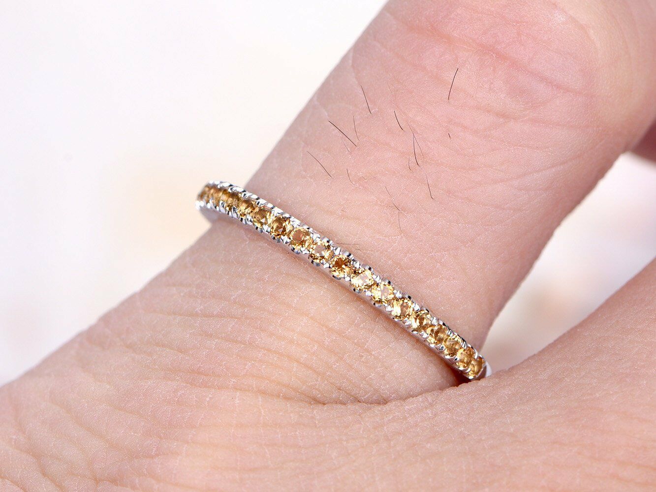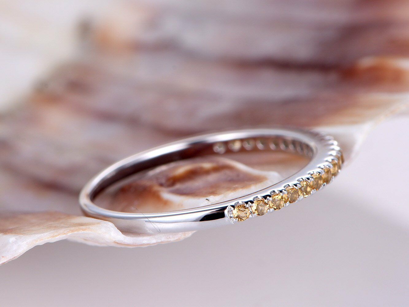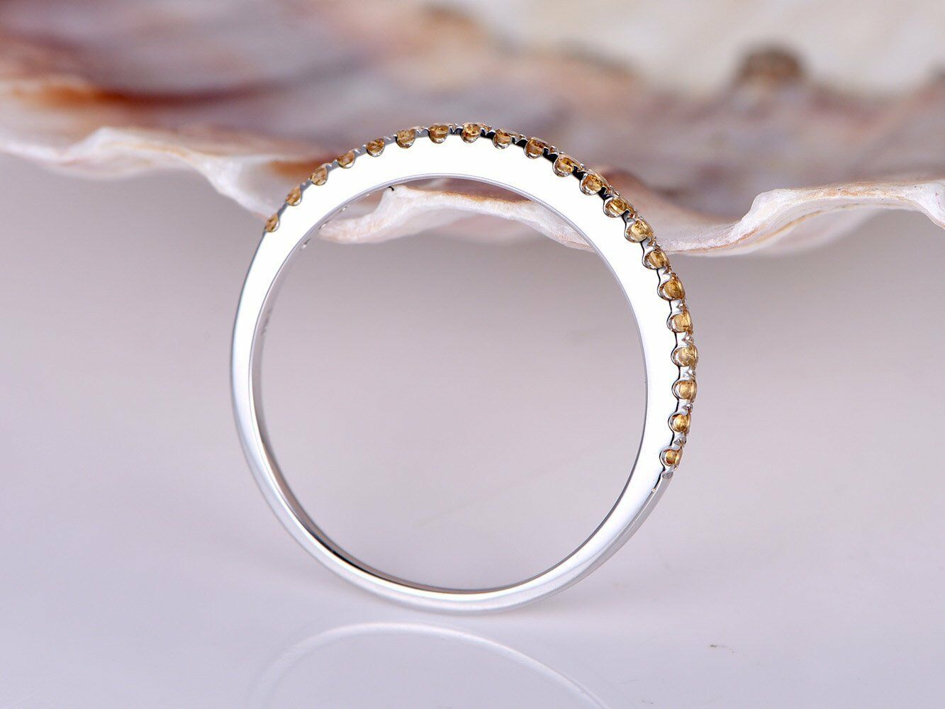 1ct Round Cut Yellow Citrine Half Eternity Wedding Band Ring 14k White Gold Over