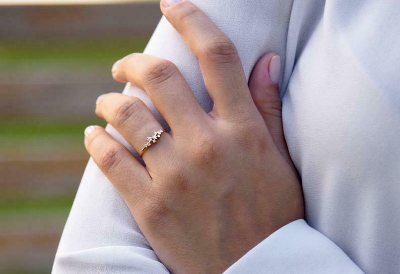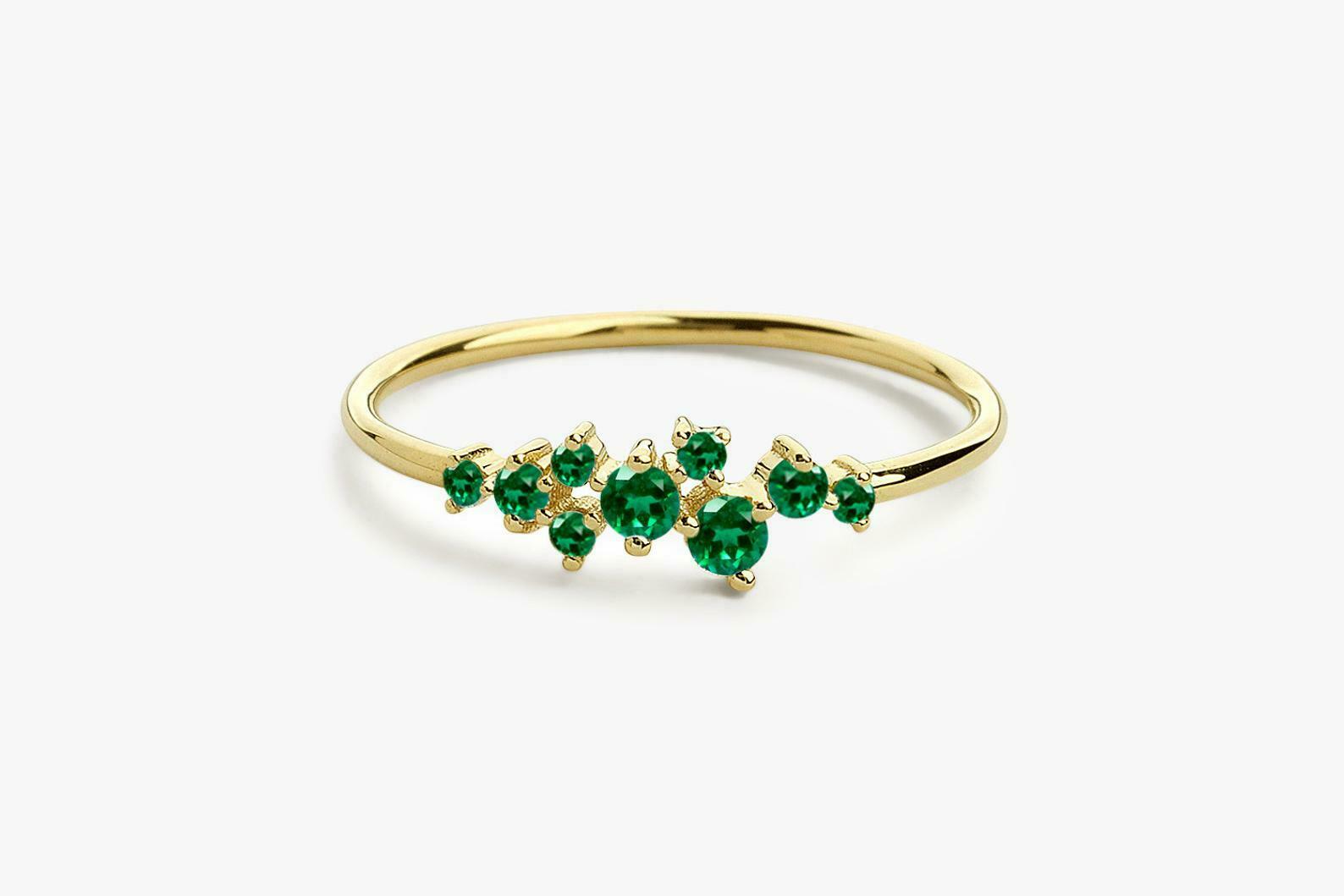 1ct Round Cut Green Emerald Cluster Minimalist Engagement Ring 14k Yellow Gold Over