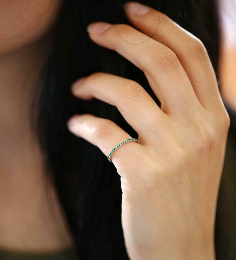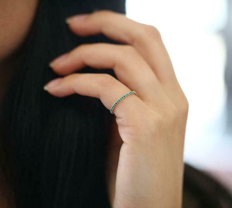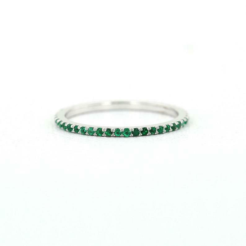 1ct Round Green Emerald Stackable Full Eternity Wedding Band 14k White Gold Over