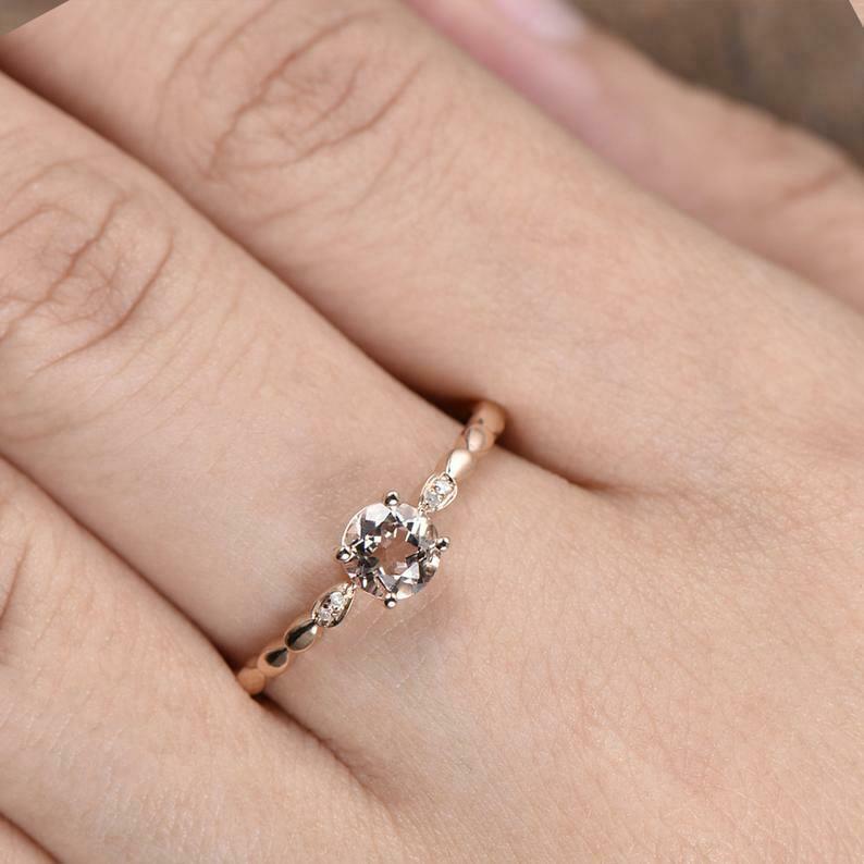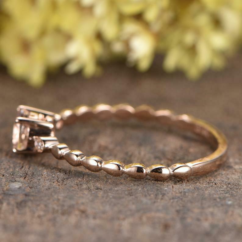 1ct Round Cut Peach Morganite Rope Shank Solitaire Accent Ring 14k Rose Gold Finish