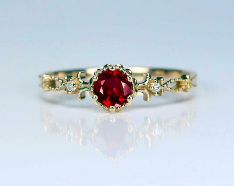 1ct Round Pink Ruby Milgrain Vintage Inspired Solitaire Ring 14k Yellow Gold Over