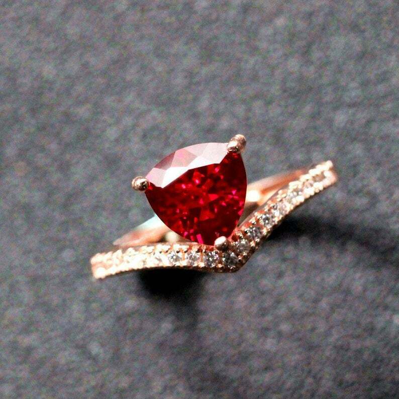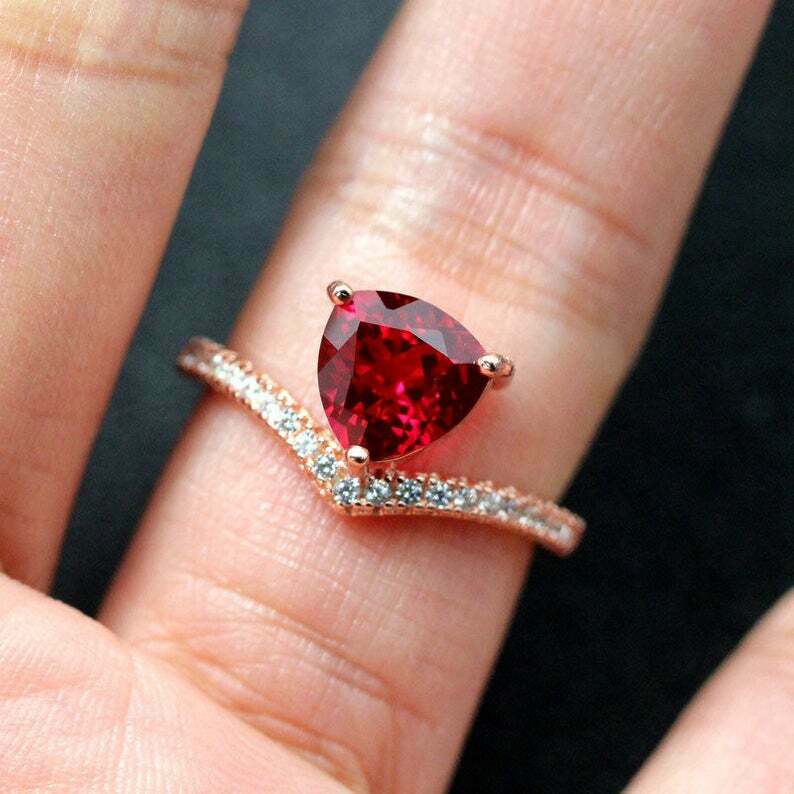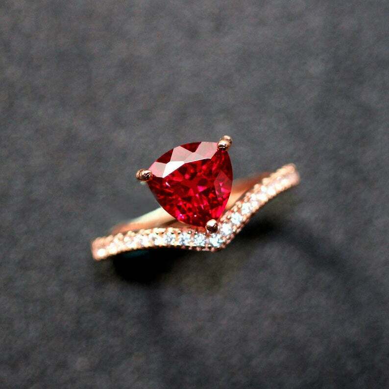 1ct Trillion Cut Ruby Engagement Ring Solitaire with Accent 14k Rose Gold Over
