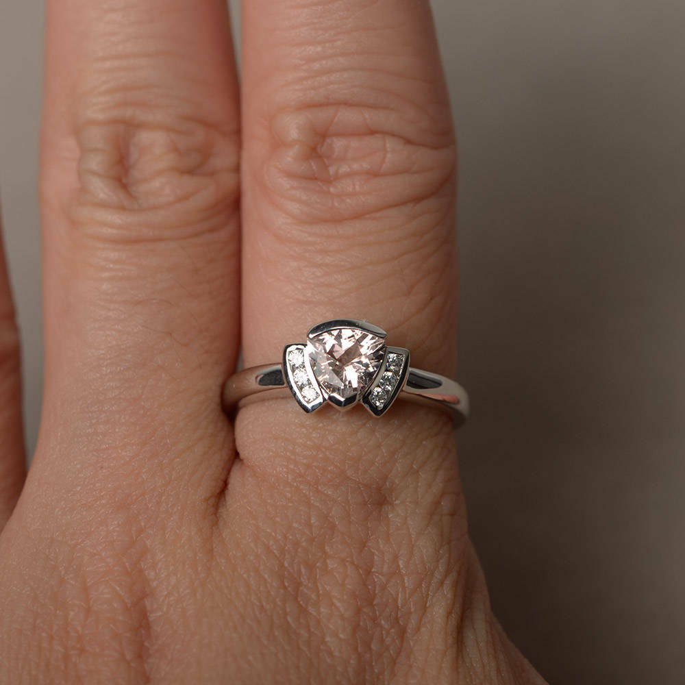 1ct Trillion Peach Morganite Unique Design Engagement Ring 14k White Gold Finish
