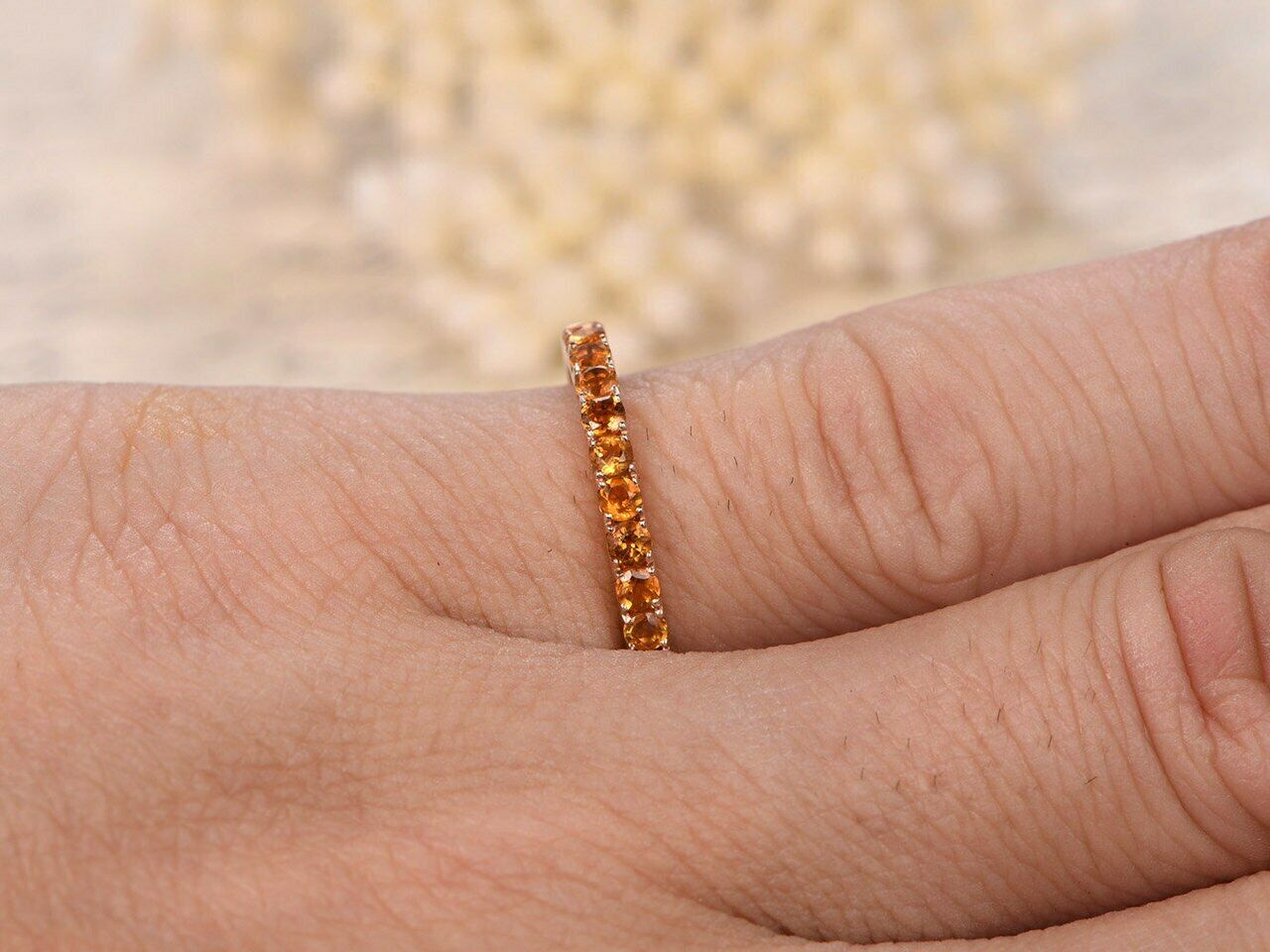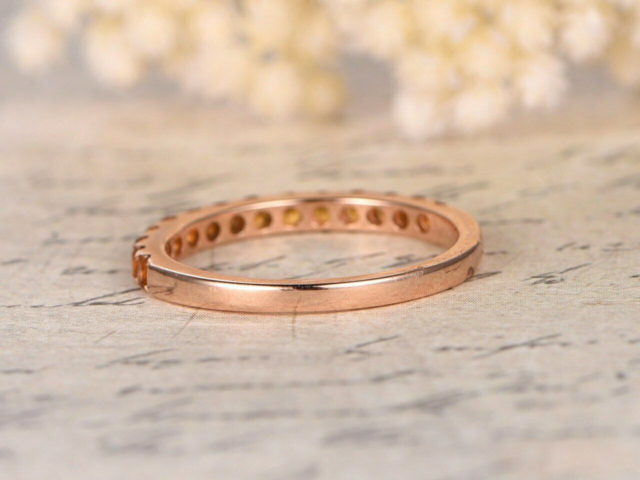 2.1ct Round Cut Yellow Citrine Stackable Half Eternity Band 14k Rose Gold Finish