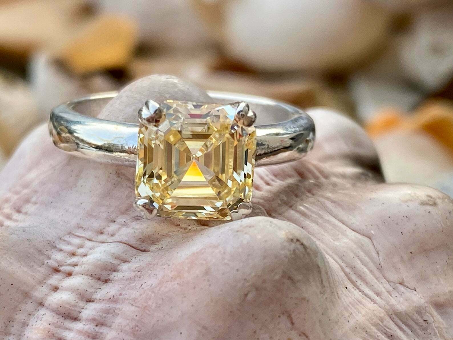 2.2ct Engagement Ring Asscher Cut Yellow Sapphire Solitaire 14k White Gold Finish