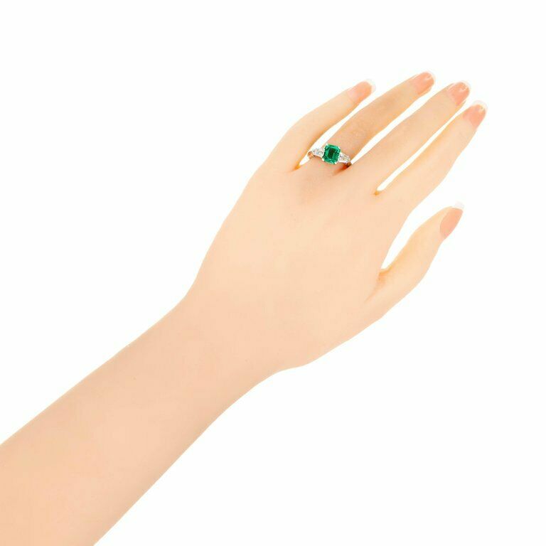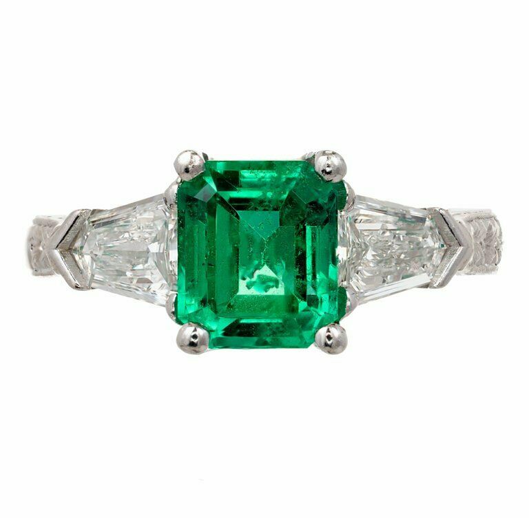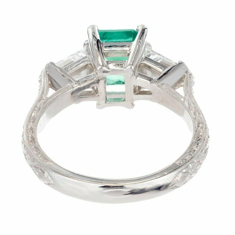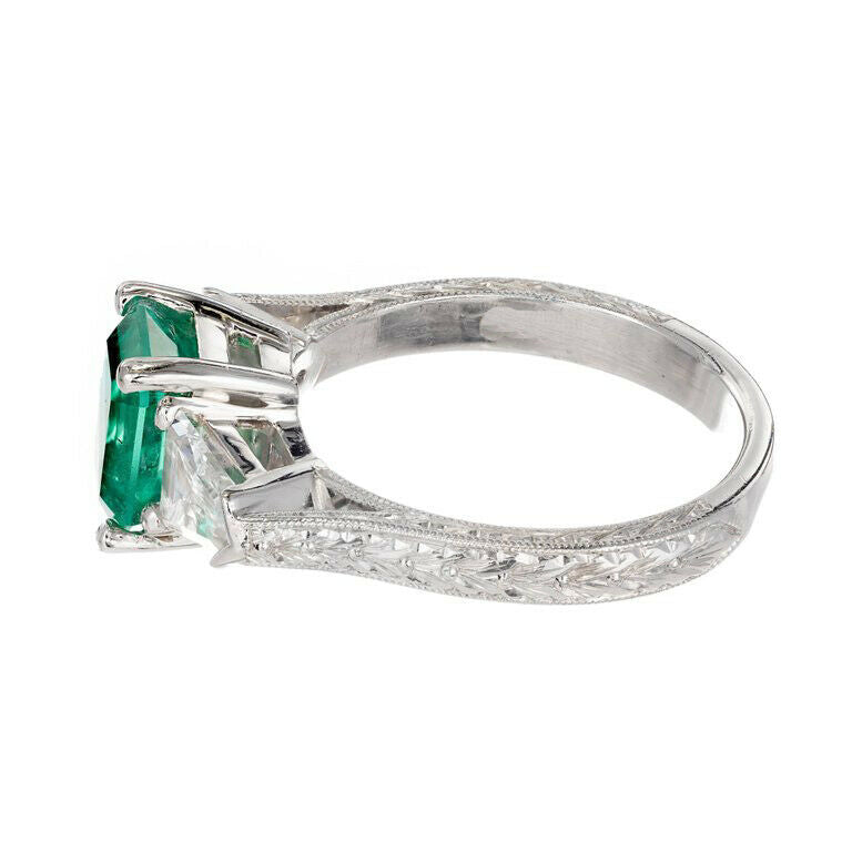 2.2ct Green Emerald Cut Engagement Ring Trilogy Vintage 14k White Gold Finish