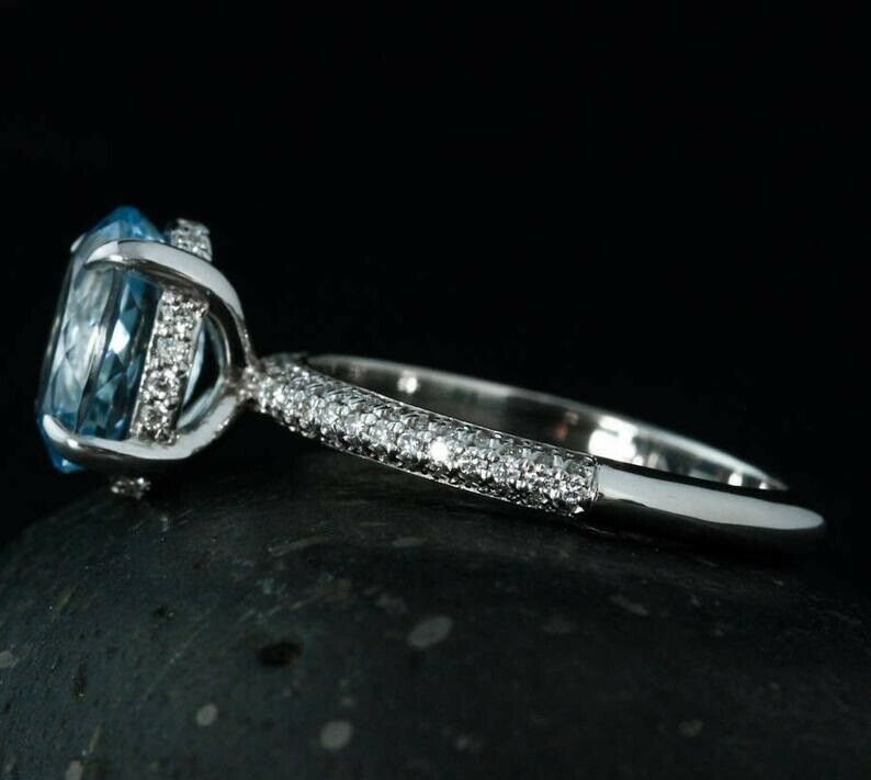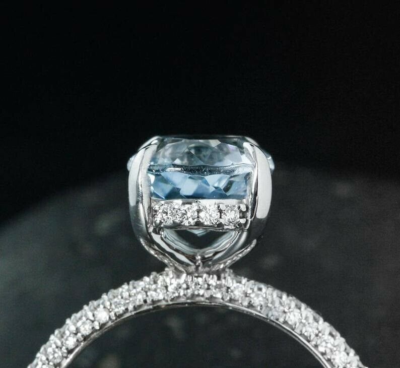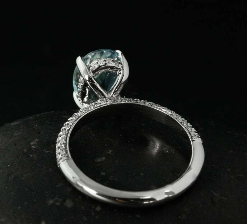 2.2ct Oval Cut Blue Aquamarine Hidden Halo Engagement Ring 14k White Gold Finish