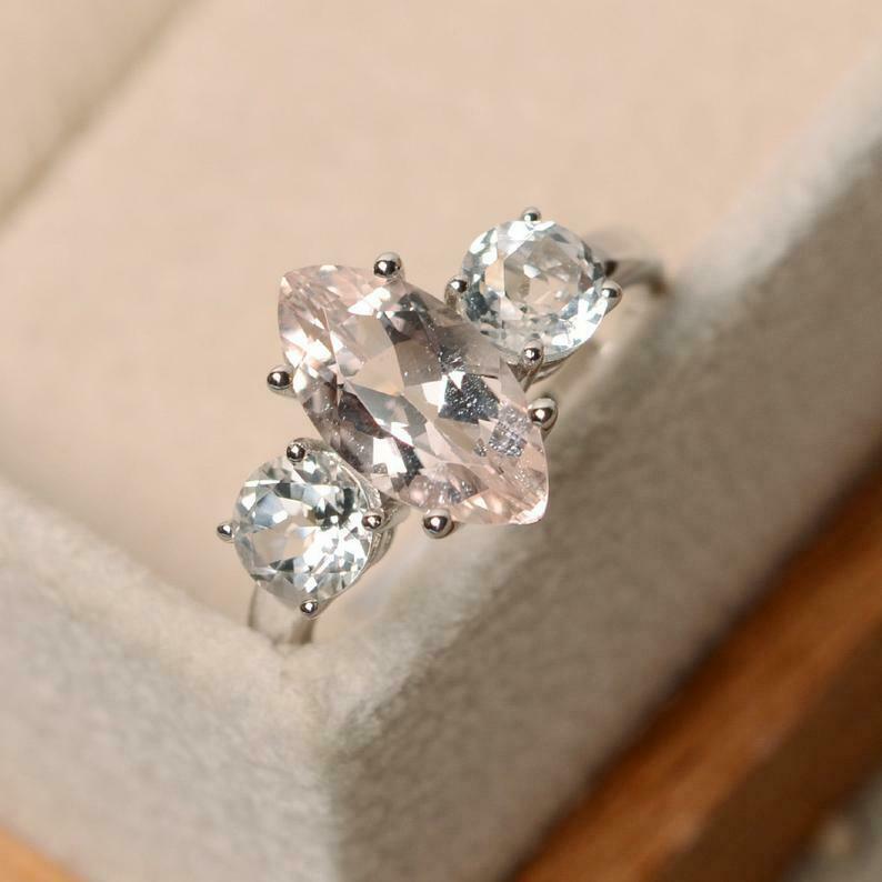 2.3ct Marquise Cut Peach Morganite Engagement Ring Trilogy 14k White Gold Finish