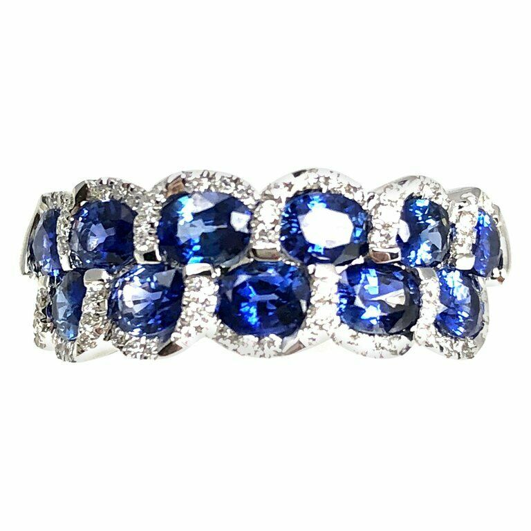 2.3ct Oval Cut Blue Sapphire Two Row Halo Wedding Band Ring 14k White Gold Over