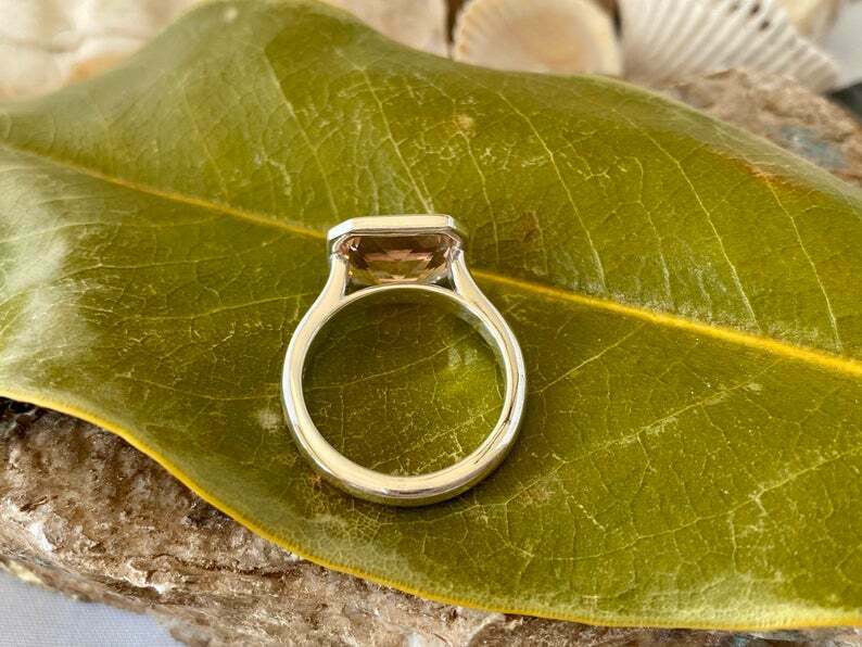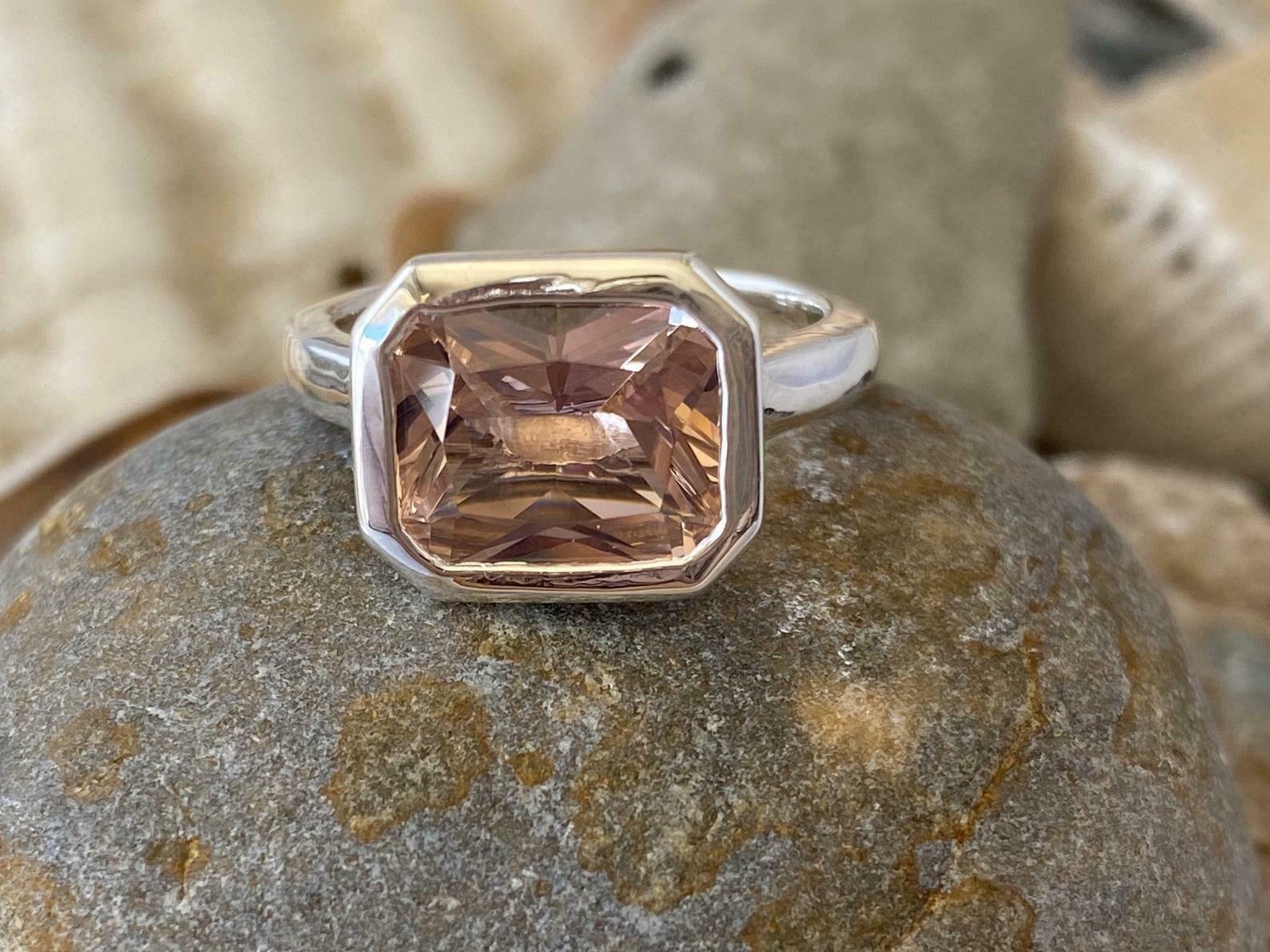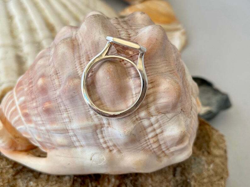 2.3ct Radiant Cut Peach Morganite Bezel Set Solitaire Ring 14k White Gold Finish