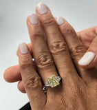 2.3ct Radiant Cut Yellow Sapphire Trilogy Engagement Ring 14k White Gold Finish