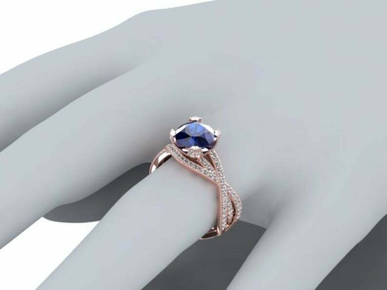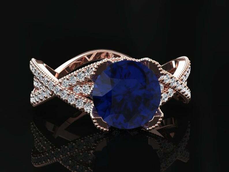 2.3ct Round Cut Blue Sapphire Infinity Split Band Cocktail Ring 14k Rose Gold Finish