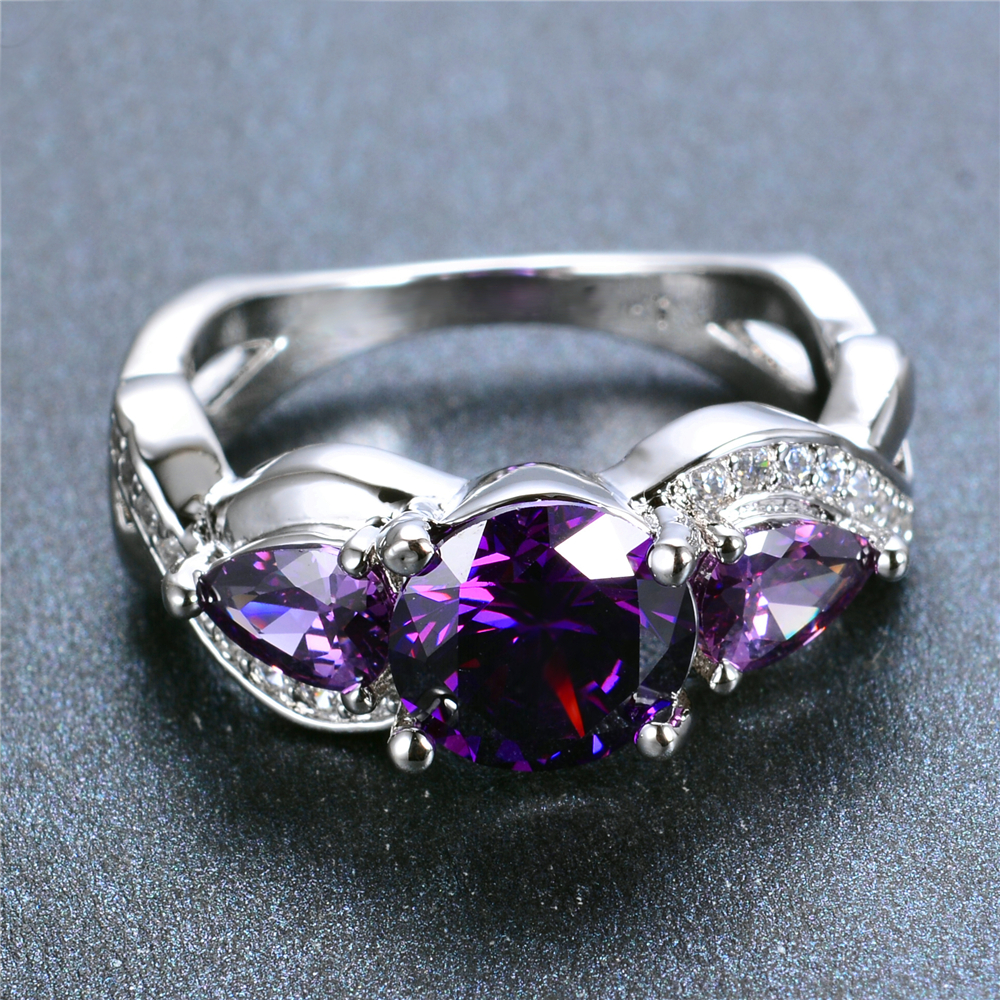 2.3ct Round Cut Purple Amethyst Engagement Ring 14k White Gold Finish Trilogy
