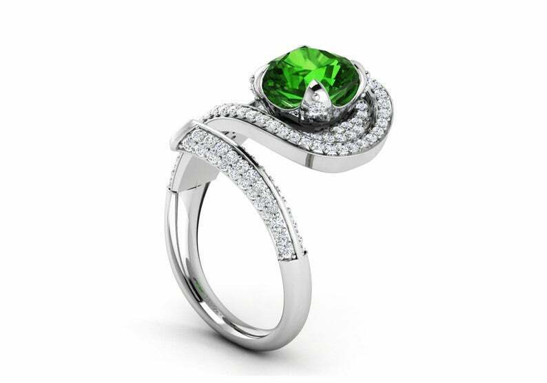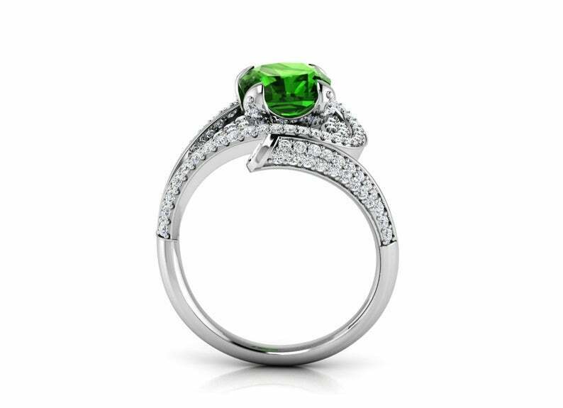 2.5ct Cushion Cut Green Emerald Open Cocktail Bypass Engagement Ring 14k White Gold Finish