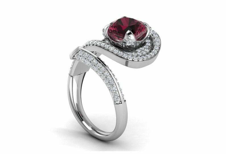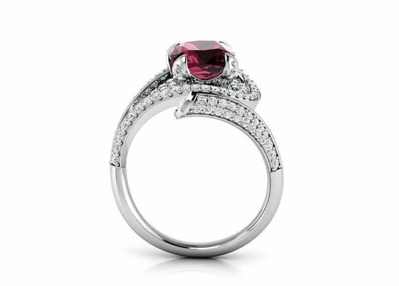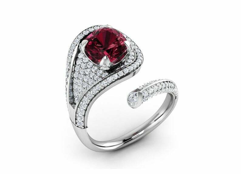 2.5ct Cushion Cut Red Garnet Open Cocktail Bypass Engagement Ring 14k White Gold Finish
