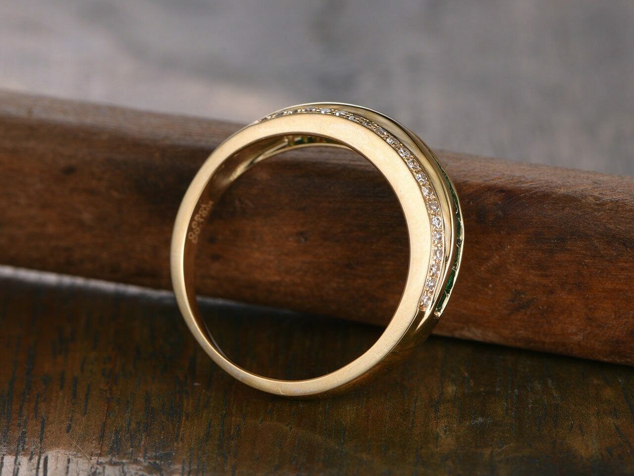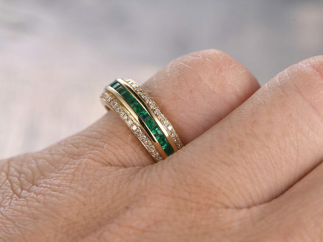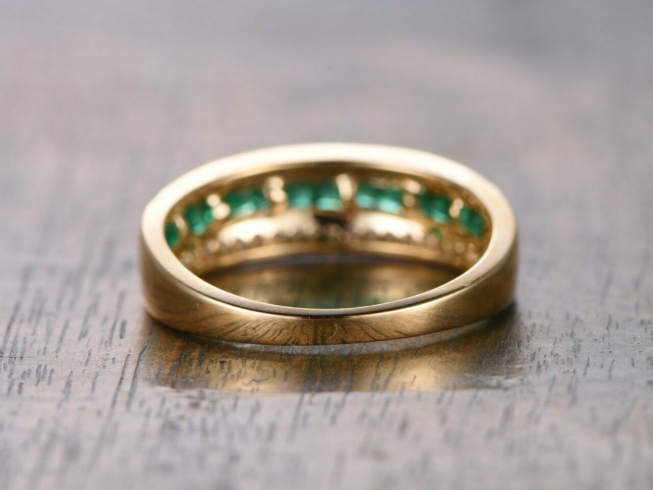 2.5ct Princess Cut Green Emerald 3 Row Half Eternity Band 14k Yellow Gold Finish