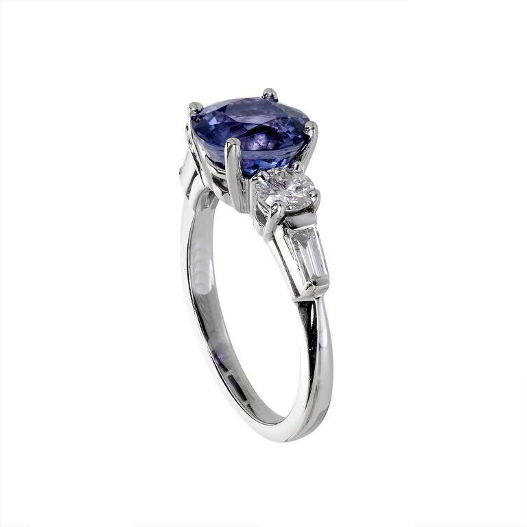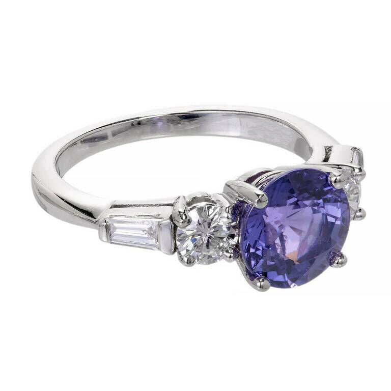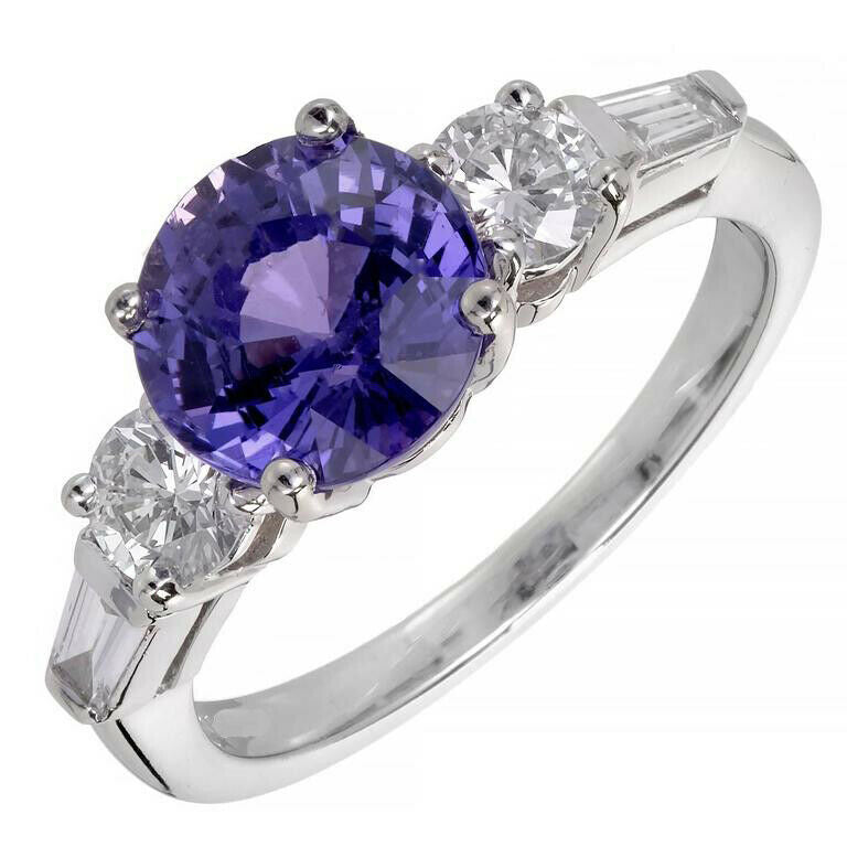 2.7ct Round Cut Purple Amethyst Engagement Ring Trilogy 14k White Gold Finish