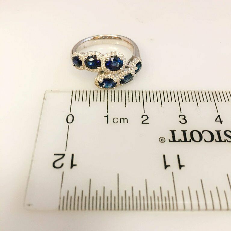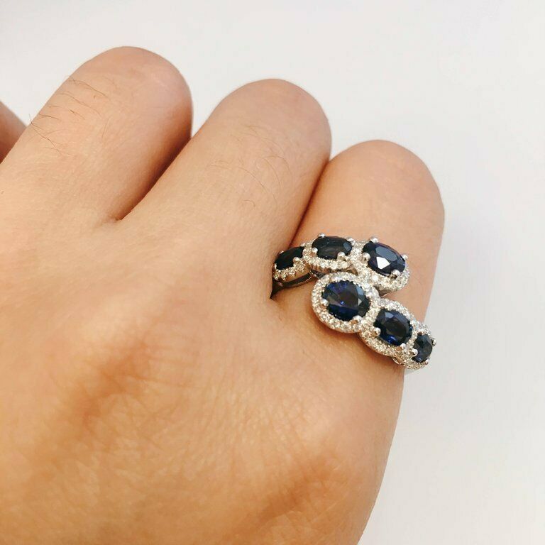 2.8ct Oval Cut Blue Sapphire Engagement Ring Unique Design 14k White Gold Finish