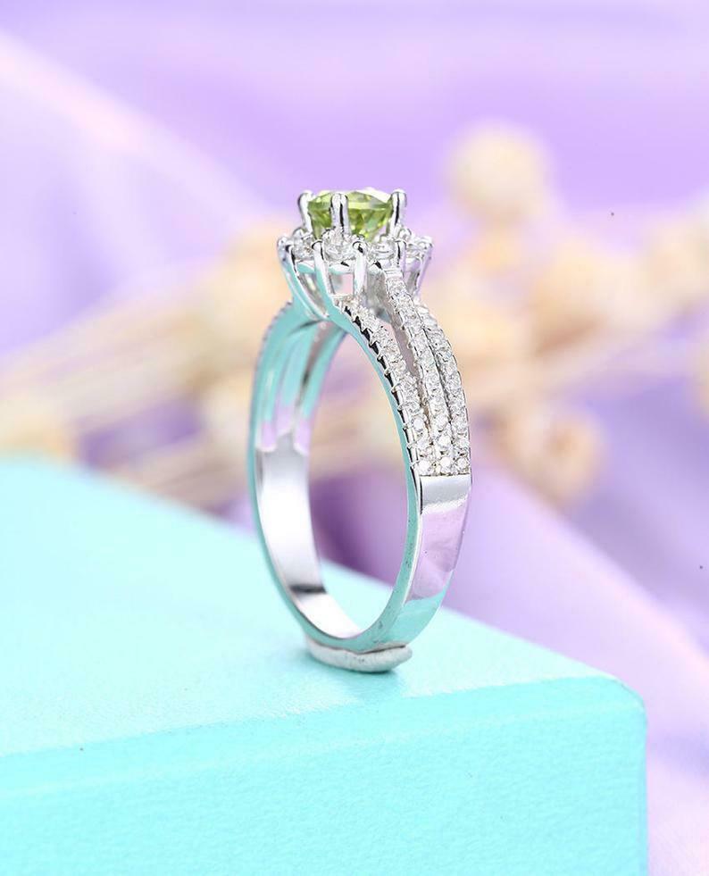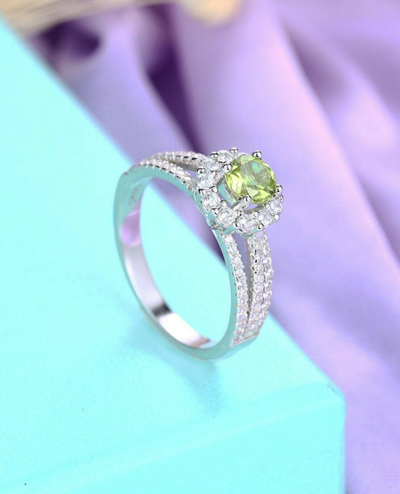 2.9ct Round Cut Green Peridot Split Band Halo Engagement Ring 14k White Gold Over