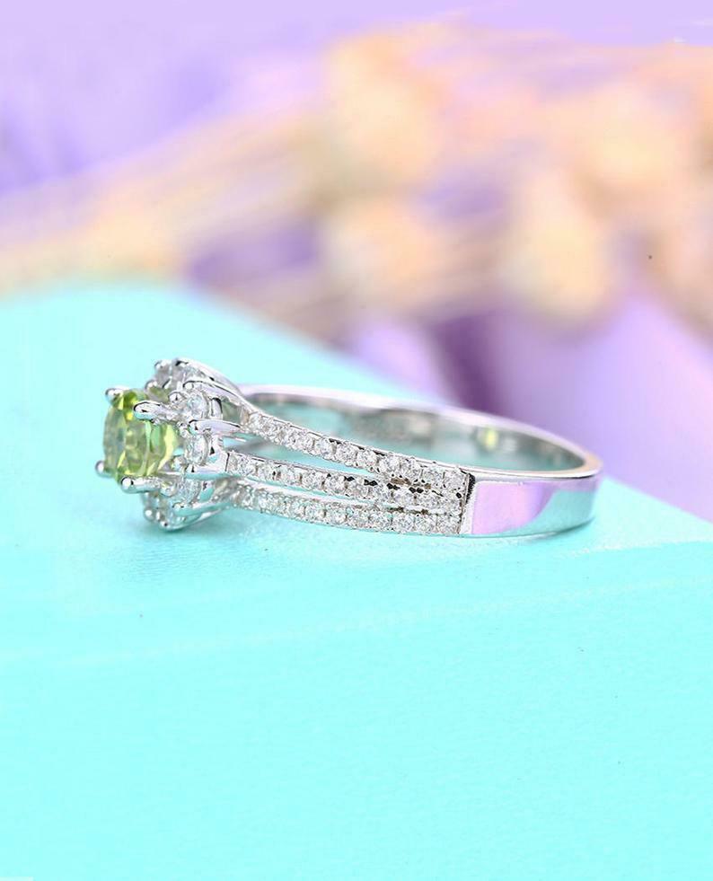 2.9ct Round Cut Green Peridot Split Band Halo Engagement Ring 14k WhiteGold Over