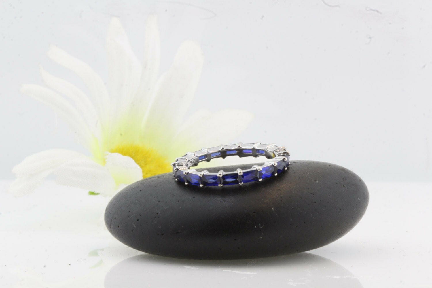 2ct Baguette Blue Sapphire Full Eternity Wedding Band Ring 14k White Gold Finish