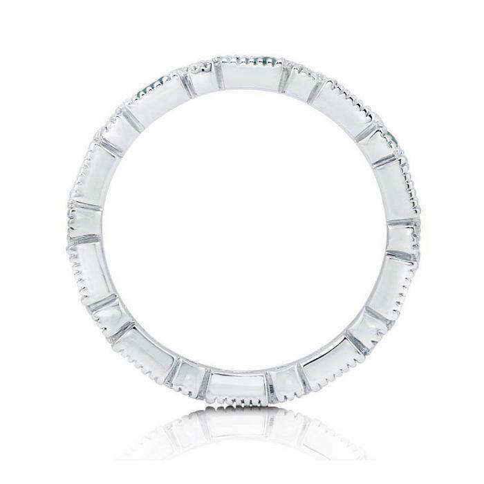 2Ct Baguette Cut Green Emerald Diamond Milgrain Wedding Band 14K White Gold Over