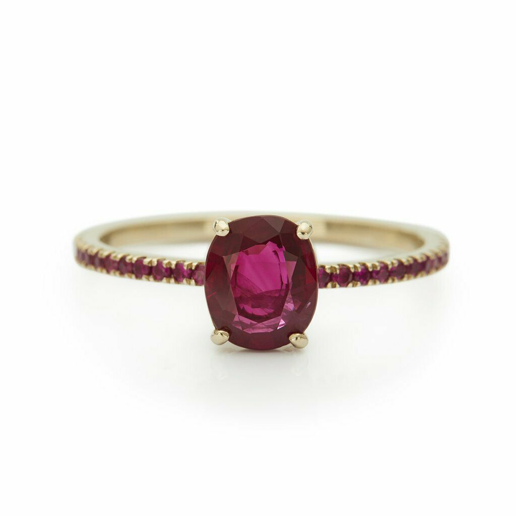 2ct Cushion Cut Pink Ruby Engagement Ring Accent Solitaire 14k Yellow Gold Finish