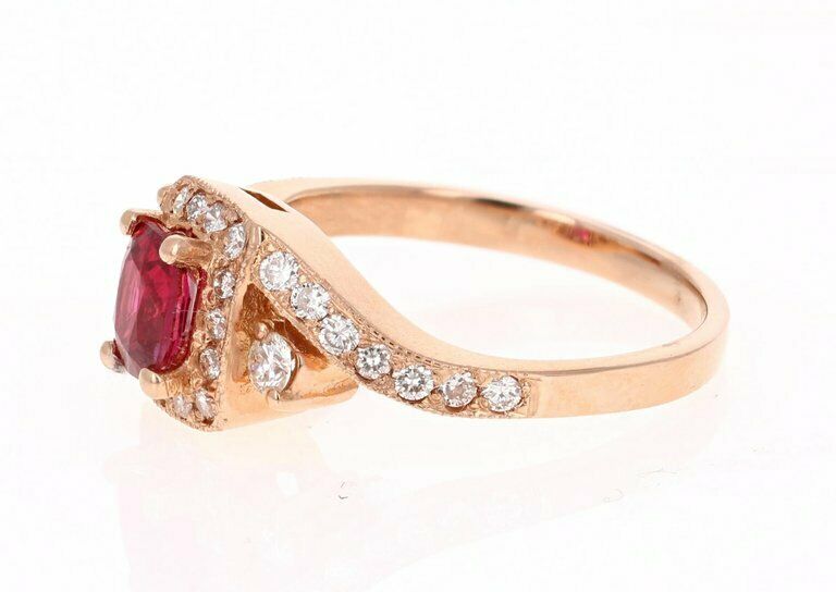 2ct Cushion Cut Pink Ruby Engagement Ring Swirl Round Accents 14k Rose Gold Over