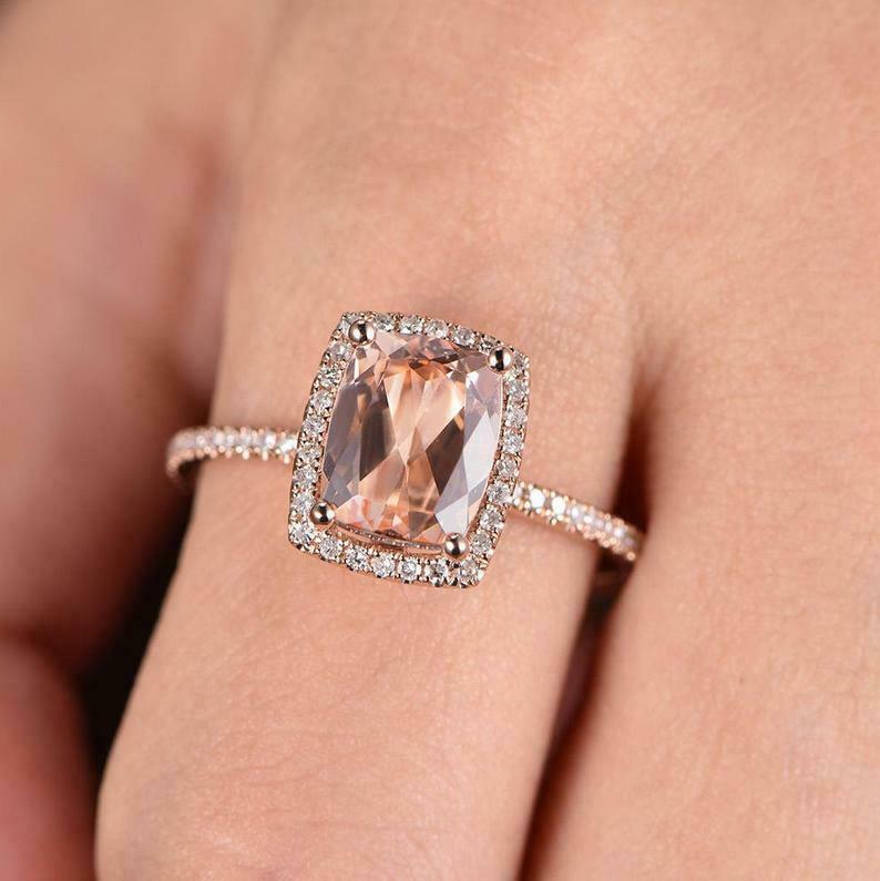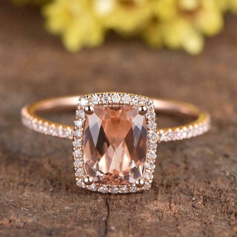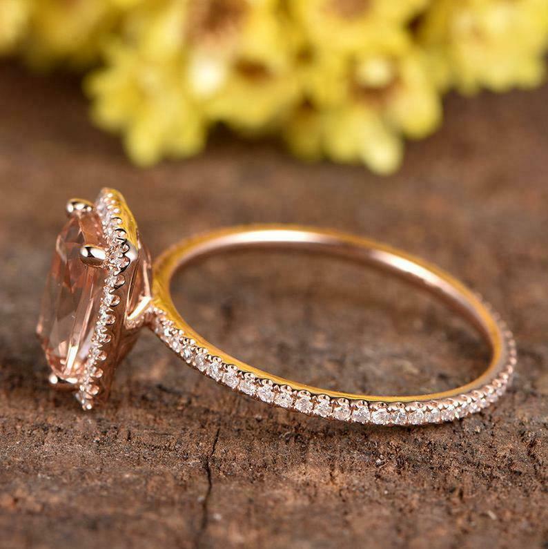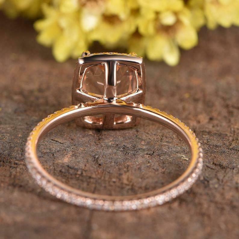 2ct Elongated Cushion Cut Peach Morganite Engagement Ring Halo 14k Rose Gold Over