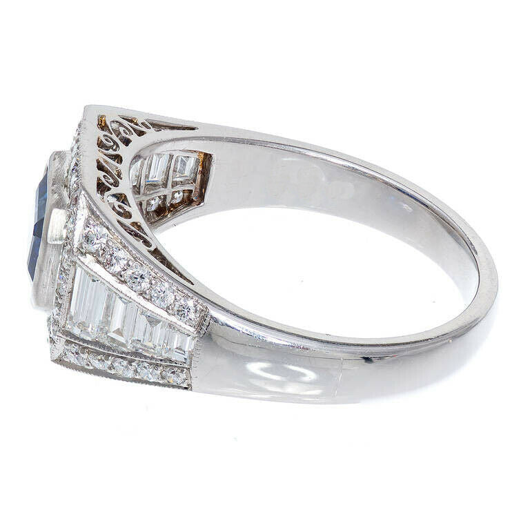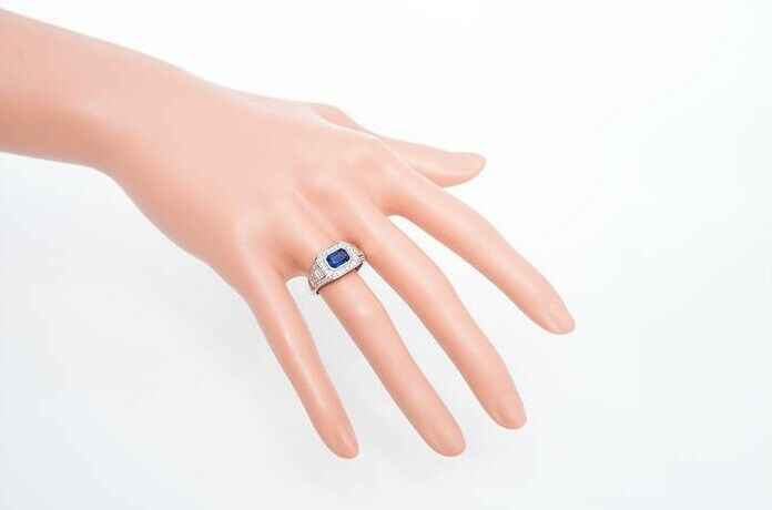 2ct Emerald Cut Blue Sapphire Engagement Ring Halo Accents 14k White Gold Finish