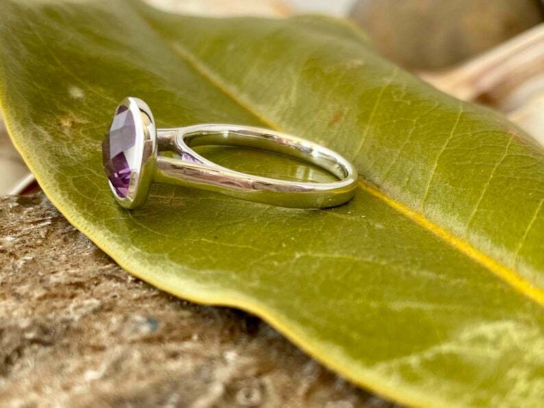 2ct Engagement Ring Cushion Cut Amethyst Bezel Set Solitaire 14k White Gold Over