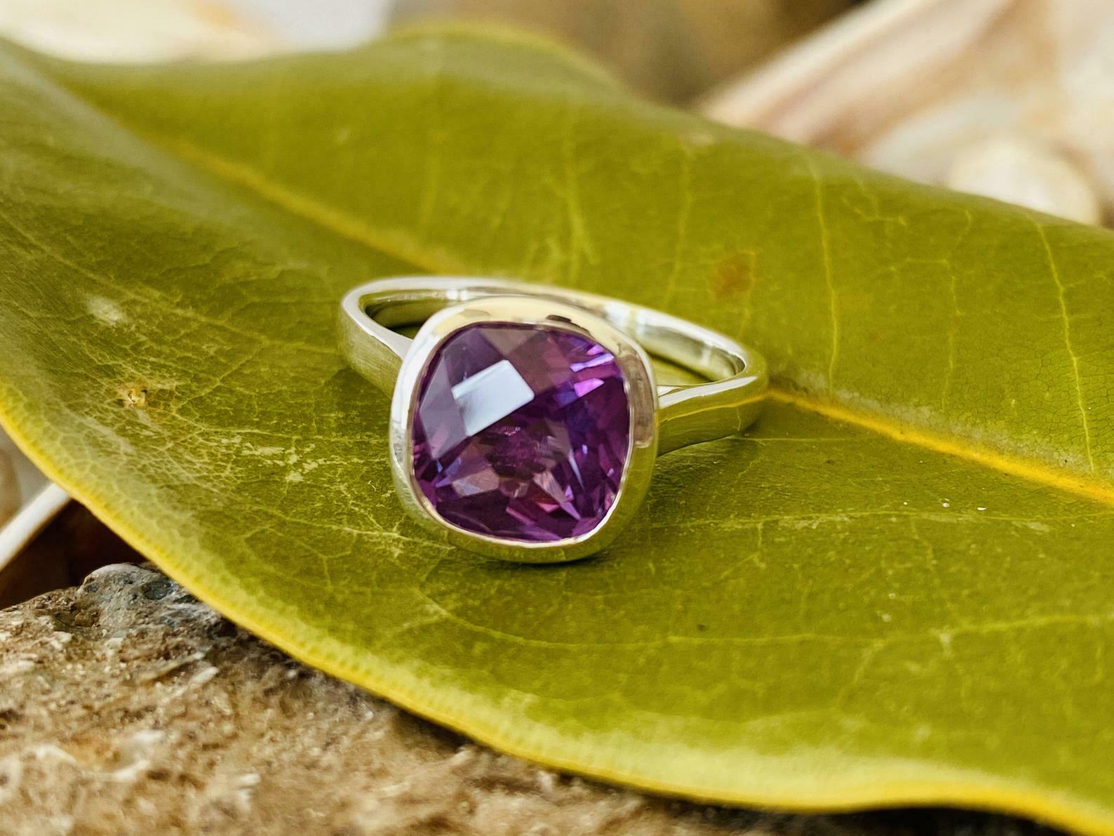 2ct Engagement Ring Cushion Cut Purple Amethyst Bezel Set Solitaire 14k White Gold Over