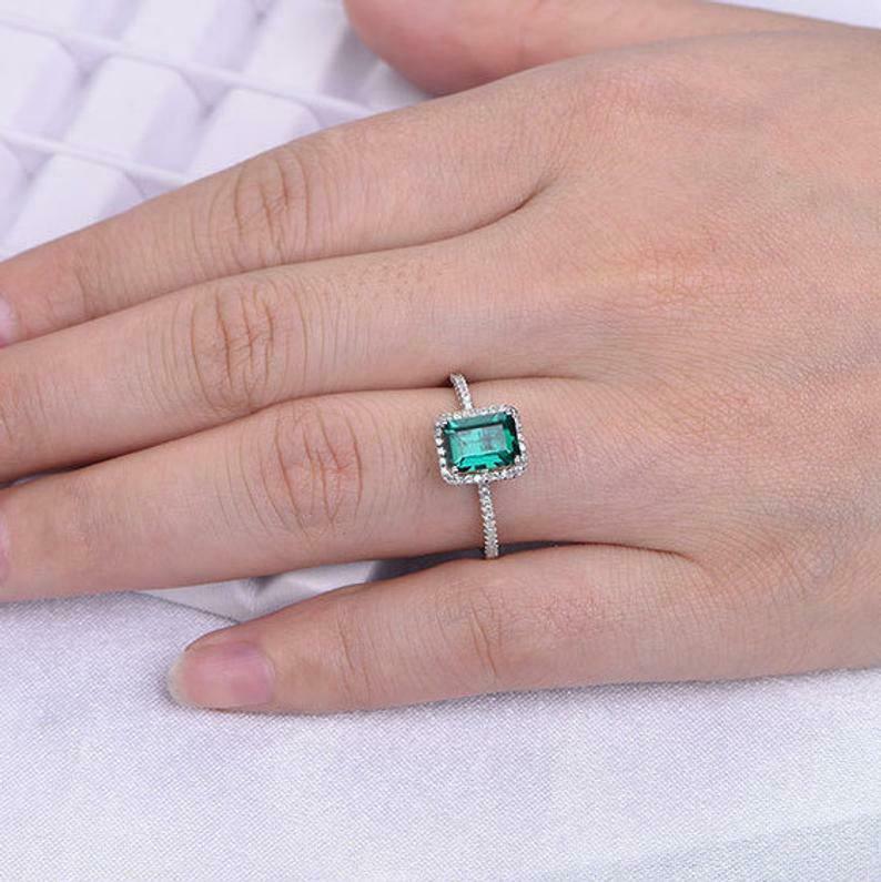 2ct Green Emerald Cut Diamond Halo Solitaire Engagement Ring 14k White Gold Over