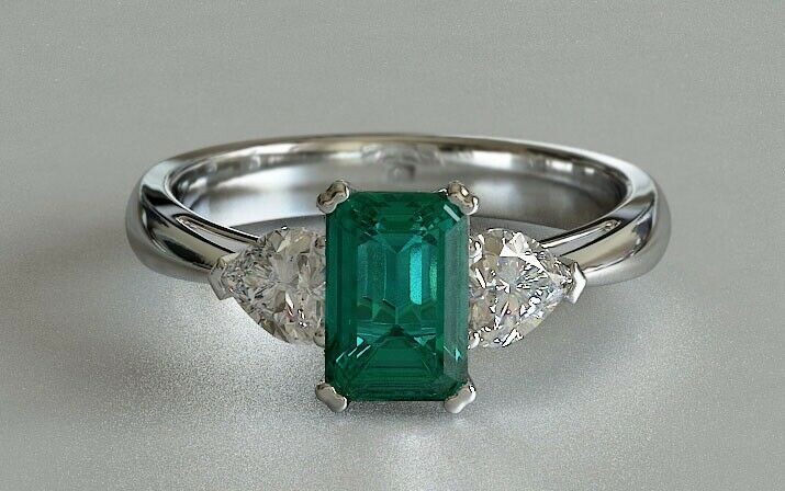 2ct Green Emerald Cut Engagement Ring Diamond Accent 14k White Gold Finish