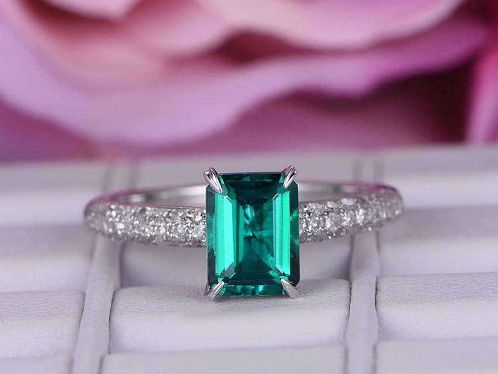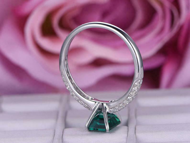 2ct Green Emerald Cut Solitaire Ring 14k White Gold Over Three Row Round Accents