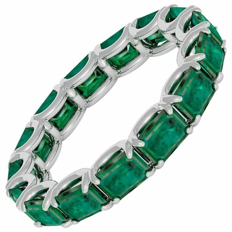 2ct Green Emerald Cut Wedding Band Ring Stylish Eternity 14k White Gold Finish