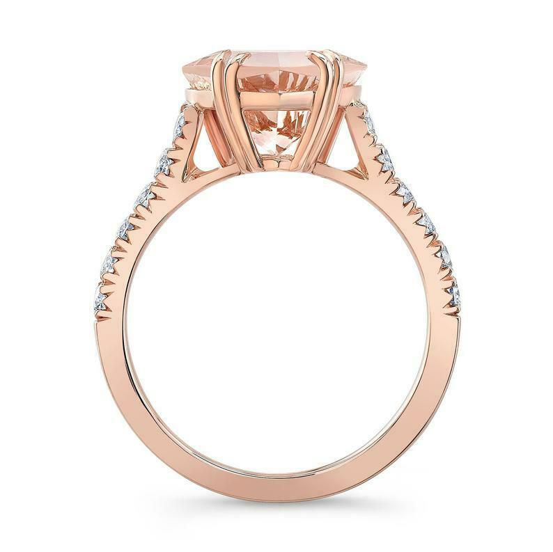 2ct Heart Cut Peach Morganite Engagement Ring 14k Rose Gold Over Diamond Accents