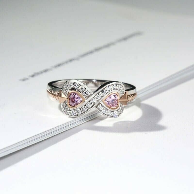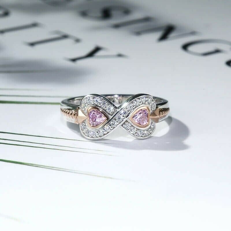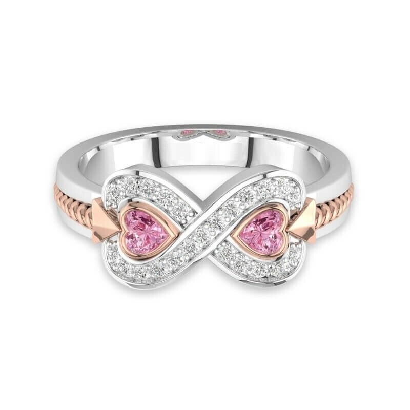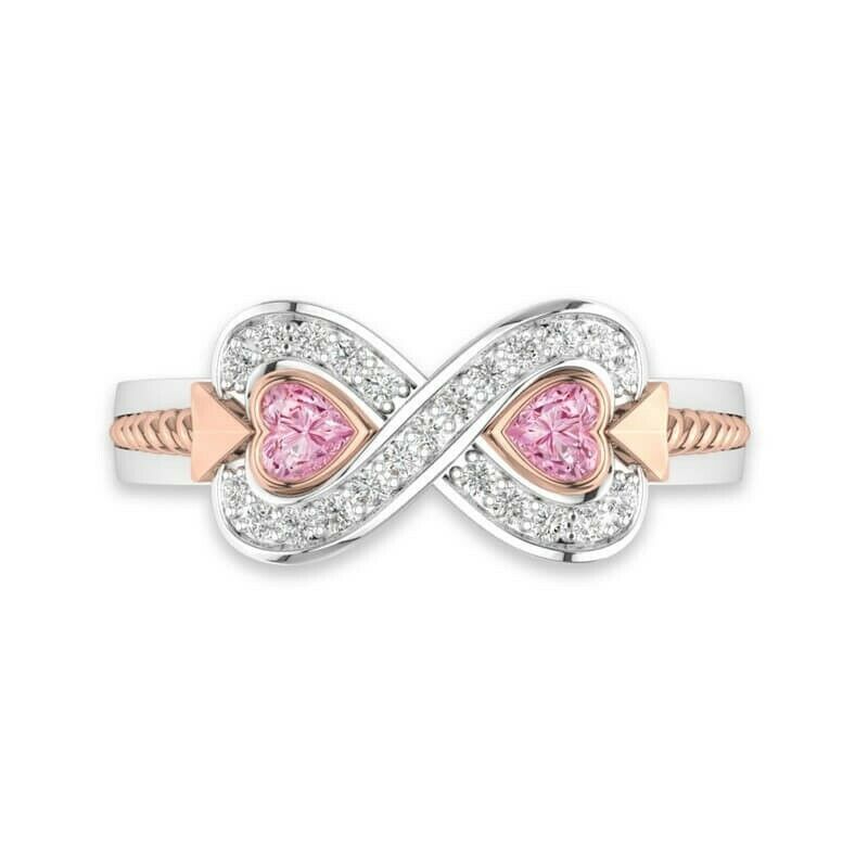 2Ct Heart Cut Pink Sapphire Diamond Infinity Engagement Ring 14K Dual Gold Over