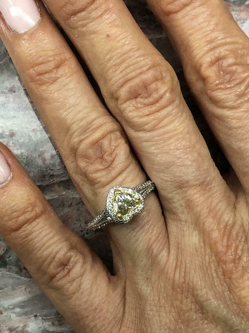 2ct Heart Yellow Sapphire Engagement Ring Split Shank Halo 14k White Gold Finish