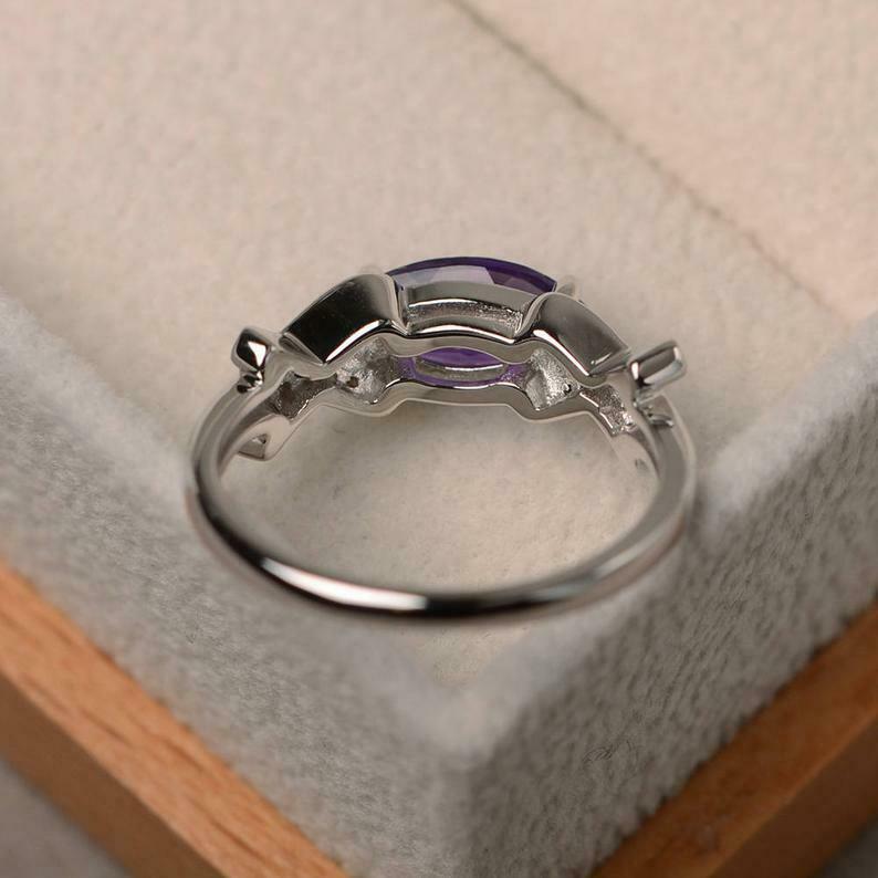 2ct Marquise Cut Purple Amethyst Solitaire with Cross Accent Ring 14k White Gold Finish