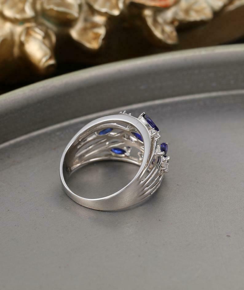 2ct Marquise Cut Blue Sapphire Leaf Cluster Wide Open Ring 14k White Gold Finish