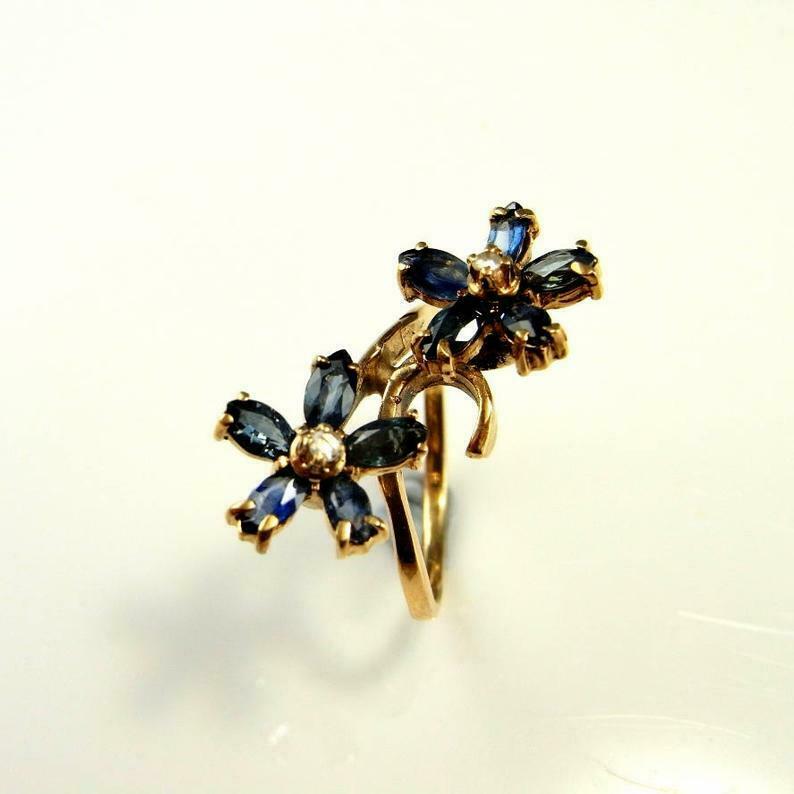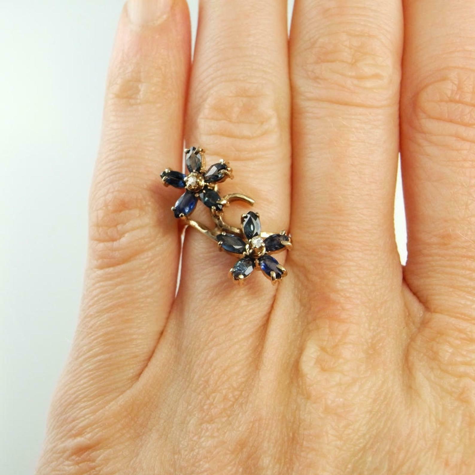 2ct Marquise Cut Blue Sapphire Two Flowers Engagement Ring 14k Yellow Gold Finish