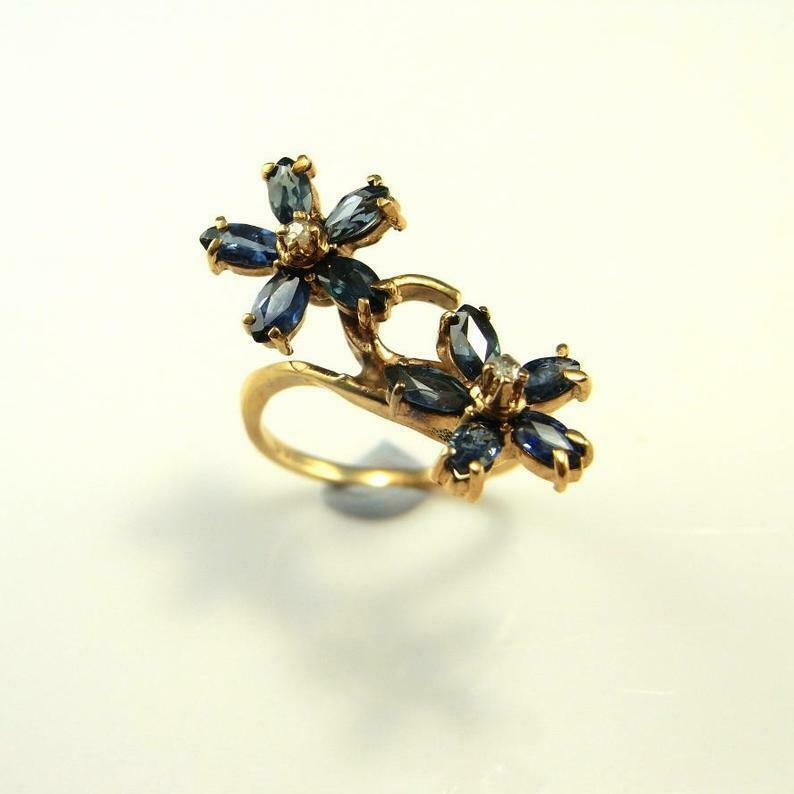 2ct Marquise Cut Blue Sapphire Two Flowers Engagement Ring 14k YellowGold Finish
