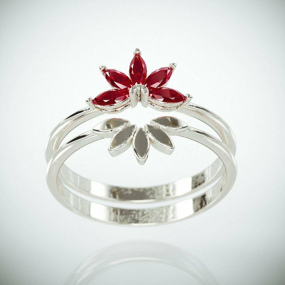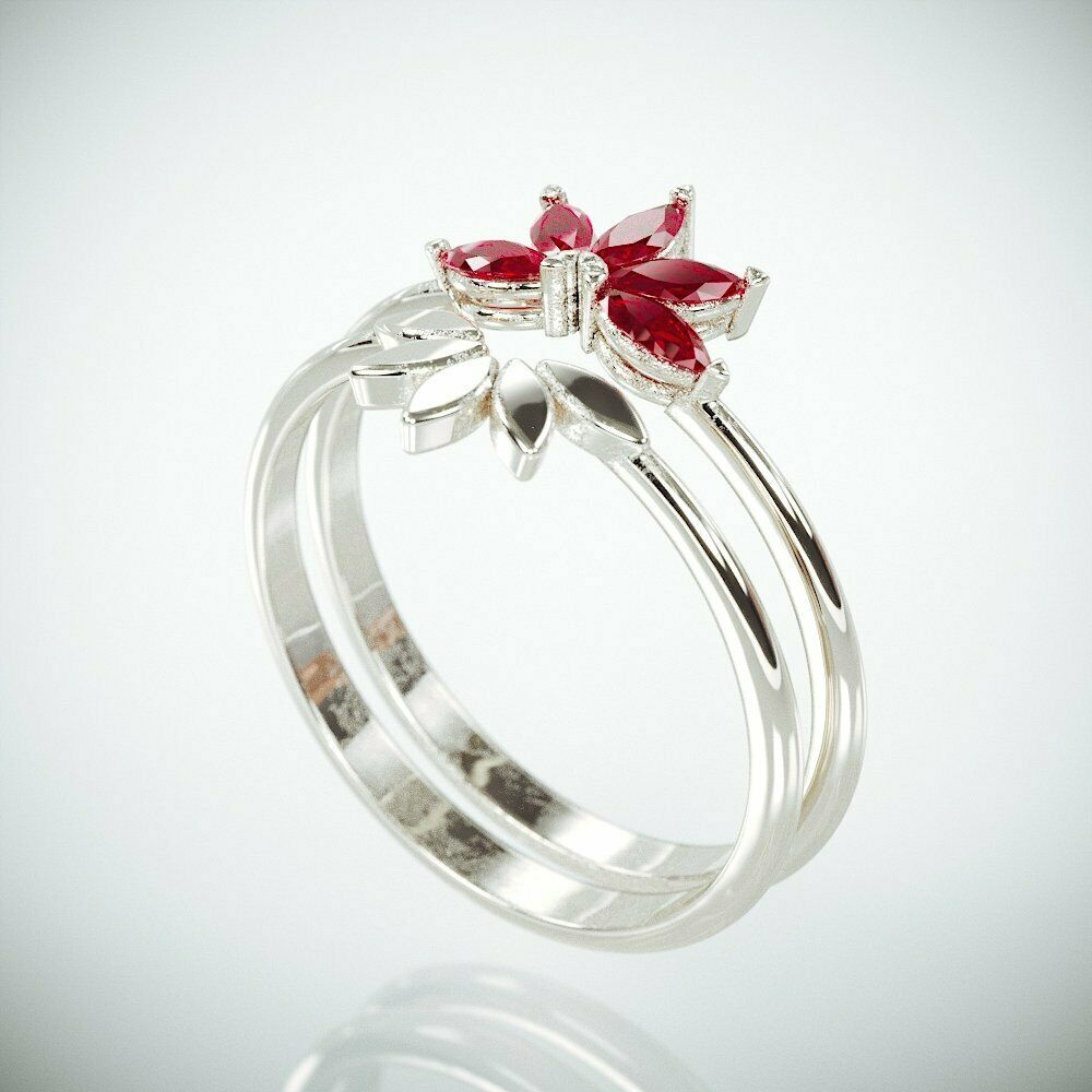 2Ct Marquise Cut Pink Ruby Crown Floral Bridal Set Band Ring 14K White Gold Over